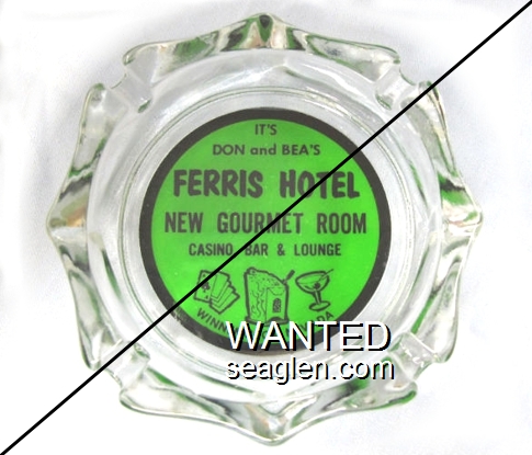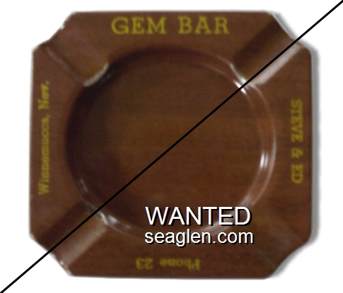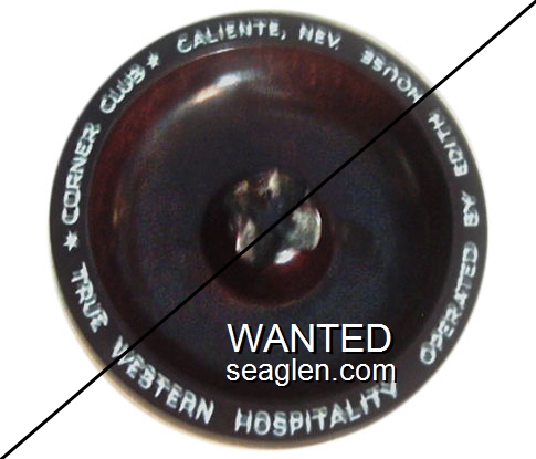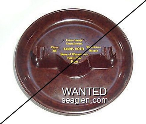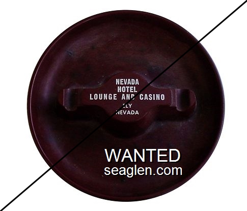 HNE-C1 Hotel Nevada (Ely) ?" Brown Bakelite Ashtray "Nevada Hotel, Lounge and Casino, Ely, Nevada" - White (Back: Bullseye, Pat. Apld. For, Vernon Co., Newton, Iowa) |