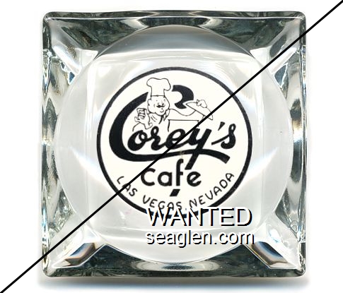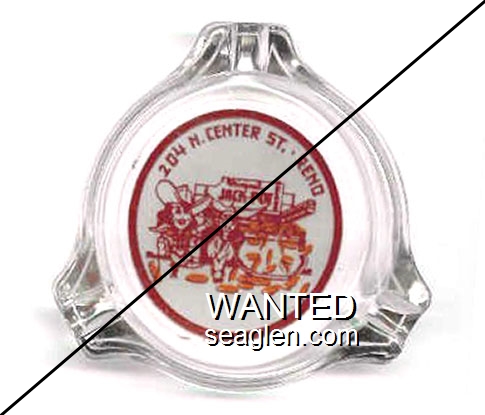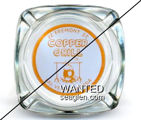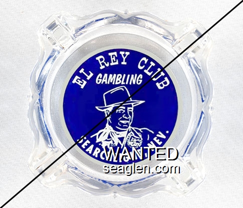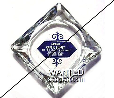 GRB-B1 Grand Buffet ?" Clear Glass Ashtray "Grand Cafe & Buffet, 31 - 33 East 2nd St., Reno, Nev., We Never Close" - White on blue |