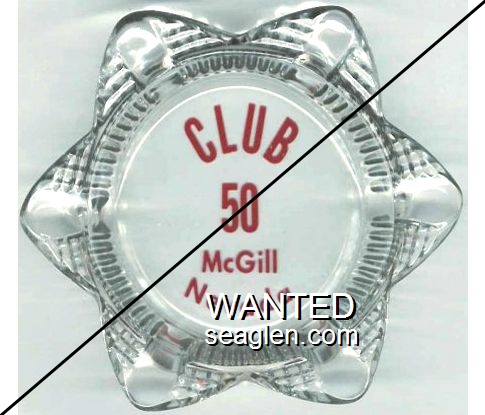 CNL-93 Cal-Neva Lodge 4 1/2" Clear Glass Ashtray "Fake - Produced by an unscrupulous eBay seller (c. 2008). Under magnification the logo is revealed to be a cross-hatch pattern as generated by a modern silkscreen process." - Red and brown on white |