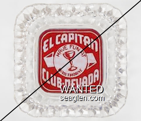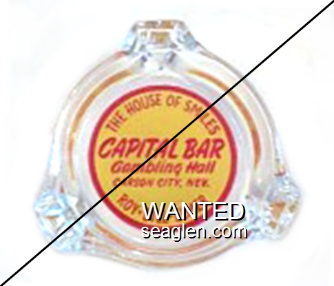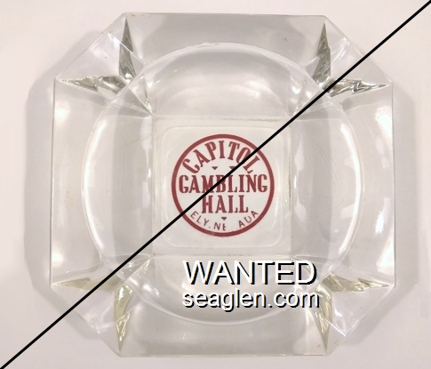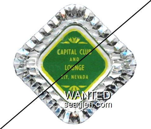 CGH-B1 Capitol Gambling Hall 4 1/2" Clear Glass Ashtray "Capital Club and Lounge, Ely, Nevada" - Yellow on green |