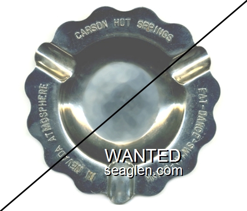 CHS-C1 Carson Hot Springs Casino 4 5/8" Silver Metal Ashtray "Carson Hot Springs Casino, Eat - Dance - Swim - Drink In Nevada Atmosphere" - Raised |