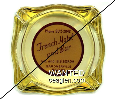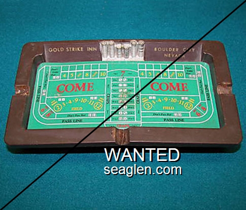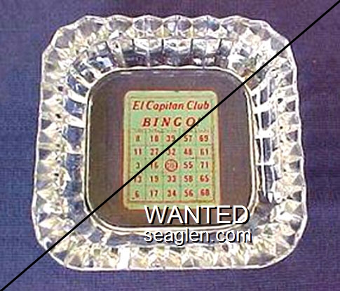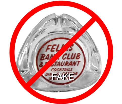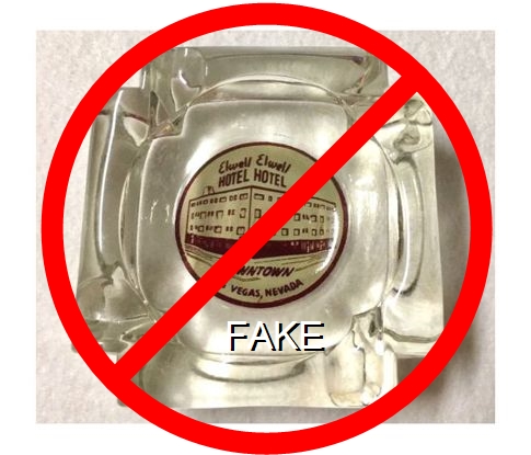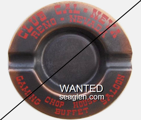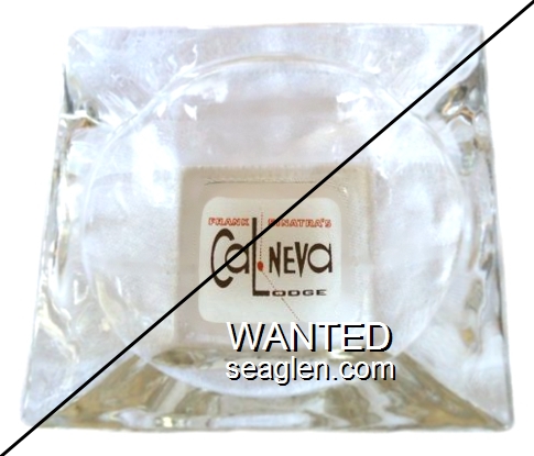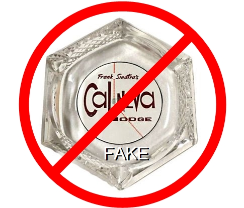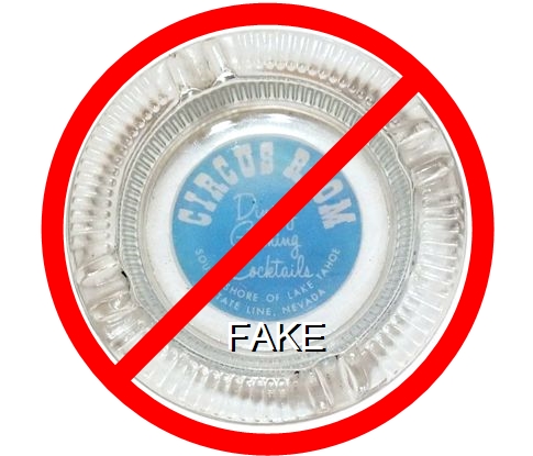 CNL-92 Cal-Neva Lodge 4 1/2" Amber Glass Ashtray "Fake - Produced by an unscrupulous eBay seller (c. 2008)." - Red and brown on white |