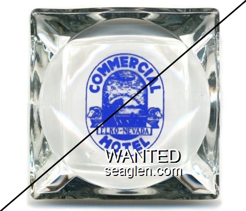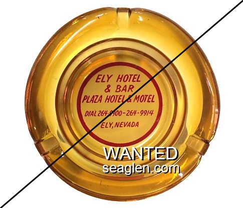HNE-A1 Hotel Nevada (Ely) 4 1/8" Clear Glass Ashtray "Hiways 6 - 50 - 50 - A and 93, Hotel Nevada, Ely, Nevada, Western Hospitality" - Orange and brown on white |