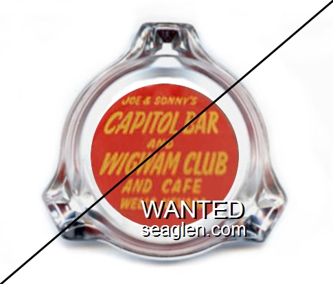CPW-A1 Capitol Bar 3 1/2" Clear Glass Ashtray "Joe & Sonny's Capitol Bar and Wigwam Club and Cafe, Wells, Nevada" - Yellow on red |