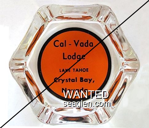 CVL-D1 Cal-Vada Lodge 3 1/4" Clear Glass Ashtray "Cal-Vada Lodge, Lake Tahoe, Crystal Bay Nevada" - Black on orange |
