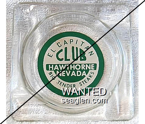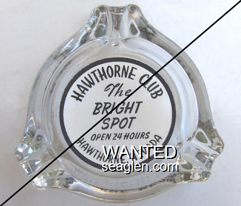 HAW-G1 Hawthorne Club 3 1/2" Clear Glass Ashtray "Hawthorne Club, The Bright Spot, Open 24 Hours, Hawthorne, Nevada" - Black on white |