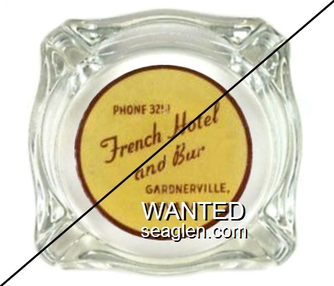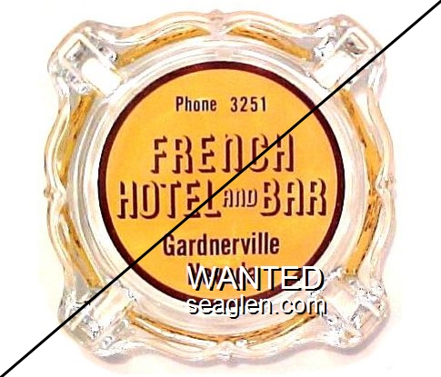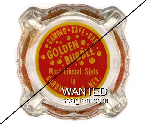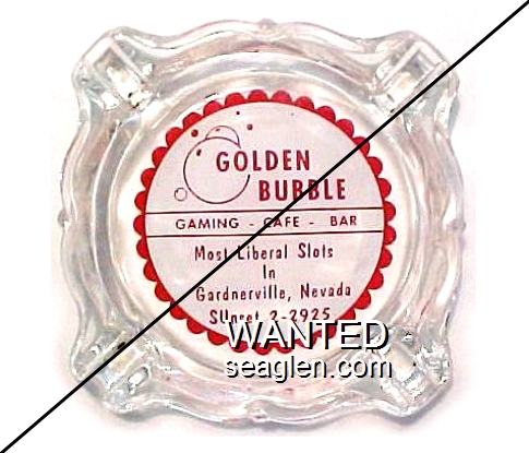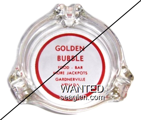 GBL-G1 Golden Bubble 3 1/4" Clear Glass Ashtray "Golden Bubble, Food - Bar, More Jackpots, Gardnerville, Nevada" - Red on white |