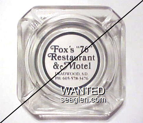 HIK-A1 Hickok's Hotel & Casino 3 1/2" Clear Glass Ashtray "Hickok's, Where the West Was Won, Deadwood, South Dakota" - Black on white |