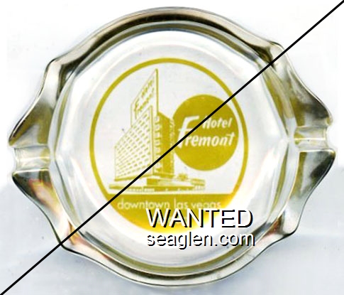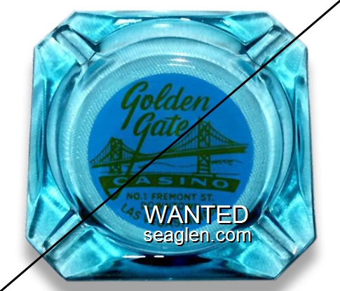 GGC-E2 Golden Gate Casino 3 1/2" Blue Glass Ashtray "The Golden Gate, No. 1 Fremont St., Downtown Las Vegas, Nevada" - Yellow on blue |