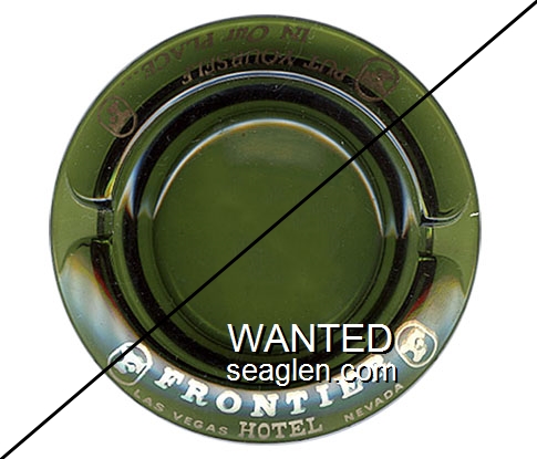 GGC-J2 Golden Gate Casino 3 1/2" Green Glass Ashtray "Golden Gate Casino, No. 1 Fremont St., Downtown, Las Vegas, Nevada" - White on black |