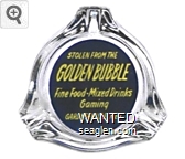 GBL-F1 Golden Bubble 3 1/2" Clear Glass Ashtray "Stolen From the Golden Bubble, Fine Food - Mixed Drinks, Gaming, Gardnerville, Nev." - Yellow on blue |