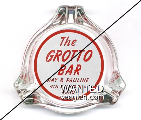 GRO-A1 Grotto Bar 3 1/2" Clear Glass Ashtray "The Grotto Bar, Ray & Pauline, 4th & Virginia, Reno" - Red on white |