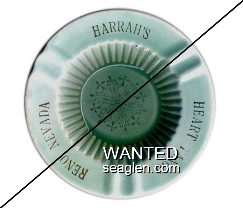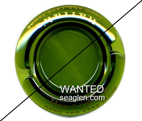 HAR-A4 Harrah's 4 1/4" Green Glass Ashtray "Harrah's, Reno and Lake Tahoe" - Gold |