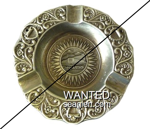 HAV-R1 Harvey's Resort Hotel & Casino 5" Gold Metal Ashtray "Harveys, Lake Tahoe" - Molded |