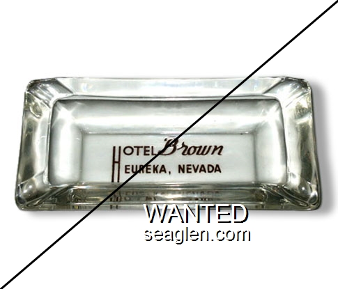 HBE-A1 Hotel Brown 4 7/8 x 2 1/2" Clear Glass Ashtray "Hotel Brown, Eureka, Nevada" - Brown |