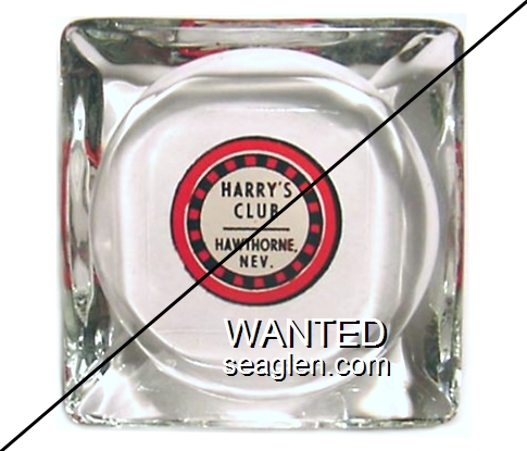 HCH-A1 Harry's Club 3 1/2" Clear Glass Ashtray "Harry's Club, Hawthorne, Nev." - Black and red on white |
