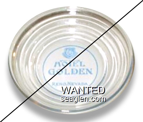 HGR-D1 Hotel Golden (Reno) 4" Clear Glass Ashtray "Hotel Golden, Reno Nevada" - Blue |
