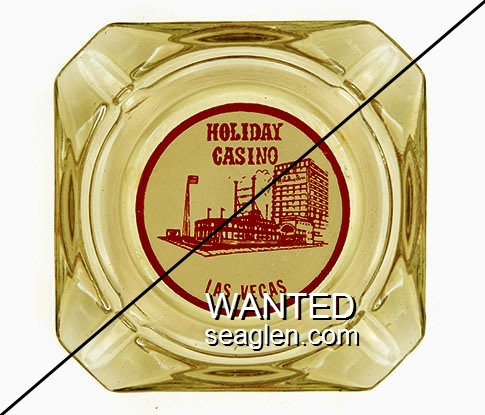 HOL-03 Holiday Casino 3 9/16" Amber Glass Ashtray "Holiday Casino, Las Vegas" - Red on white |