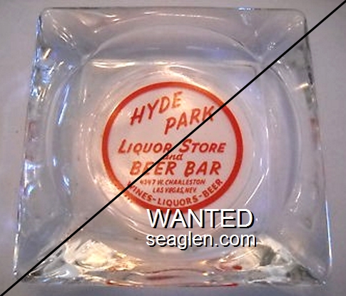 HPL-A1 Hyde Park Liquor Store 3 1/2" Clear Glass Ashtray "Hyde Park Liquor Store and Beer Bar, 4347 W. Charleston, Las Vegas, Nev., Wines - Liquors - Beer" - Red |