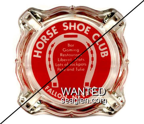 HOR-K1 Horseshoe Club (Reno) ?" Silver Metal Ashtray "Horse Shoe Club Reno" - Raised |