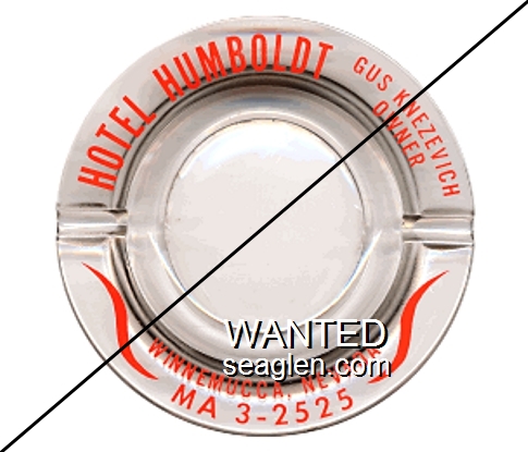 HUM-D1 Humboldt Hotel 5" Clear Glass Ashtray "Hotel Humboldt, Gus Knezevich Owner, Winnemucca, Nevada, MA 3-2525" - Red |