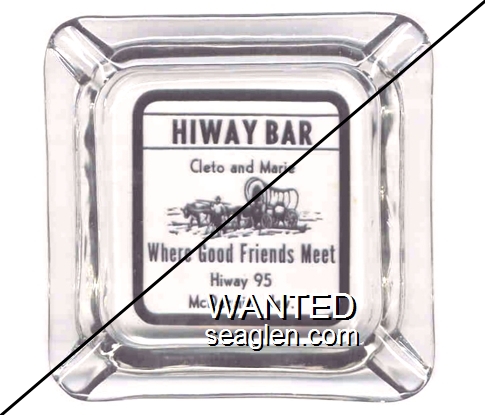 HWY-A1 Hiway Bar 4 1/4" Clear Glass Ashtray "Hiway Bar, Cleto and Marie, Where Good Friends Meet, Hiway 95, McDermitt, Nev." - Black |