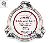 JCW-A1 Johnnie's Club 3 1/2" Clear Glass Ashtray "Compliments of Johnnie's Club and Cafe, Headquarters for Fine Foods and Drinks, Wells, Nevada" - Red |