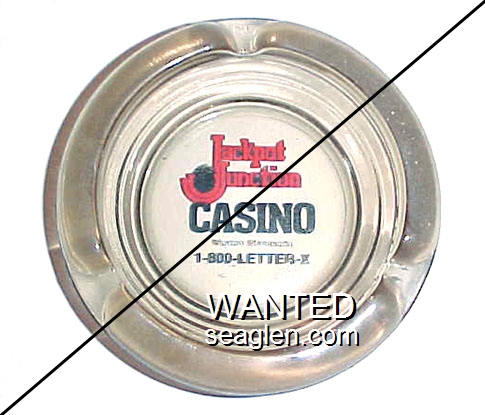 JJU-A1 Jackpot Junction Casino Hotel 4 1/2" Smoke Glass Ashtray "Jackpot Junction Casino, Morton, Minnesota, 1-800-LETTER-X" - Red and black |