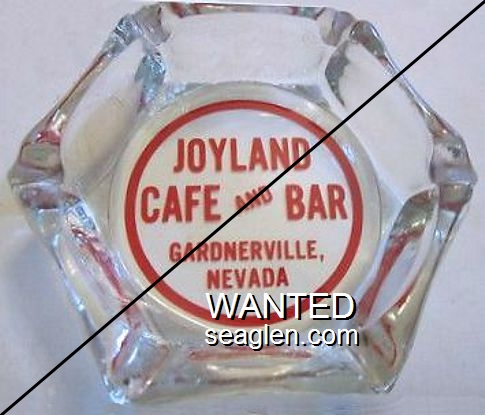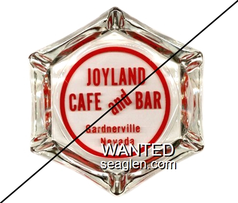 JOY-A1 Joyland Bar 4 1/2" Clear Glass Ashtray "Joyland Cafe and Bar, Gardnerville, Nevada" - Red |