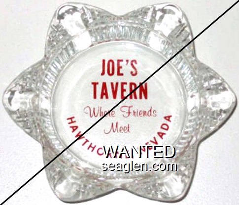 JTV-E1 Joe's Tavern ?" Clear Glass Ashtray "Joe's Tavern, Where Friends Meet, Hawthorne, Nevada" - Red |