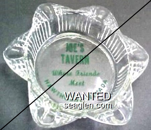 JTV-E2 Joe's Tavern ?" Clear Glass Ashtray "Joe's Tavern, Where Friends Meet, Hawthorne, Nevada" - Green |