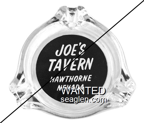 JTV-J1 Joe's Tavern 3 1/2" Clear Glass Ashtray "Joe's Tavern, Hawthorne Nevada" - White on black |