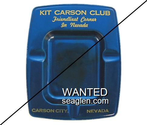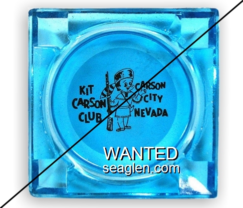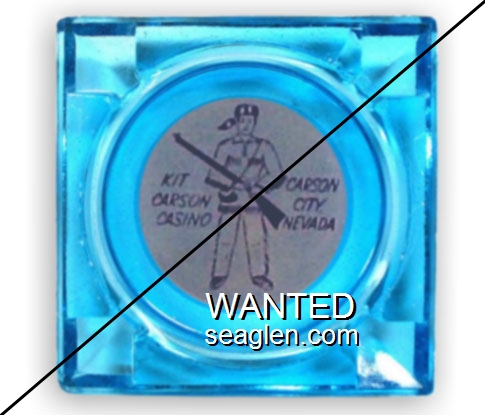 KIT-A4 Kit Carson Casino 3 1/2" Blue Glass Ashtray "Kit Carson Casino, Carson City, Nevada" - Brown on white |