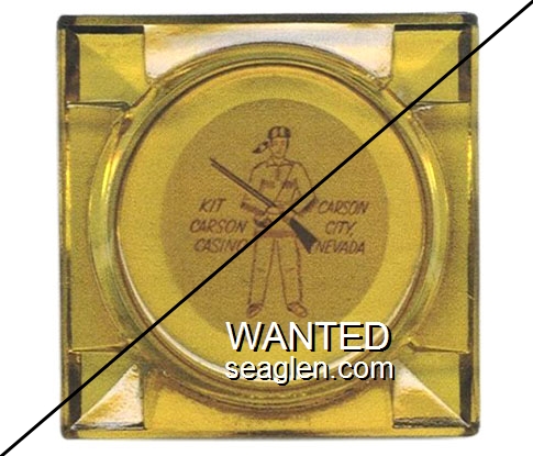 KIT-A2 Kit Carson Casino 3 1/2" Green Glass Ashtray "Kit Carson Casino, Carson City Nevada" - Brown on white |