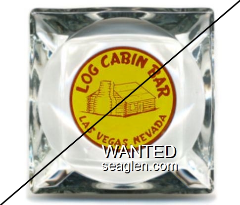 LCB-A1 Log Cabin Bar 3 1/2" Clear Glass Ashtray "Log Cabin Bar, Las Vegas, Nevada" - Red on yellow |
