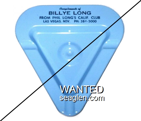LCC-E1 California Club (Las Vegas) 3 3/8 x 3 5/8" Blue Metal Ashtray "Compliments of Billye Long, From Phil Long's Calif. Club, Las Vegas, Nev. PH. 384-5000" - Black |