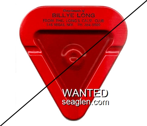 LCC-E4 California Club (Las Vegas) 3 3/8 x 3 5/8" Red Metal Ashtray "Compliments of Billye Long, From Phil Long's Calif. Club, Las Vegas, Nev. PH. 384-5000" - Black |
