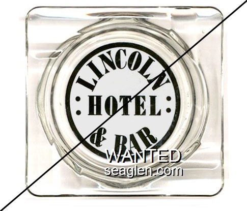 LHB-B1 Lincoln Hotel & Bar 4 1/4" Clear Glass Ashtray "Lincoln Hotel & Bar" - Black on white |