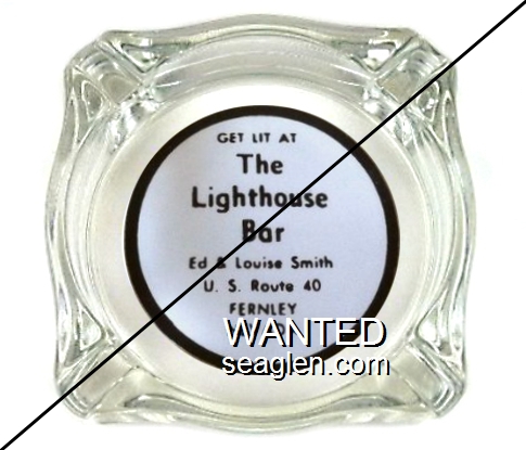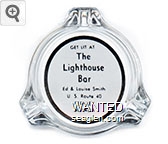 LHF-B1 Light House Bar 3 1/2" Clear Glass Ashtray "Get Lit At The Lighthouse Bar, Ed & Louise Smith, U. S. Route 40, Fernley, Nevada" - Black on white |