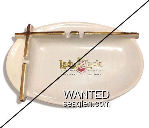 LLC-G1 Lady Luck Casino 8 3/4 x 5 7/8" Beige Porcelain Ashtray "Lady Luck Casino & Saloon, Downtown Las Vegas" - Gold |
