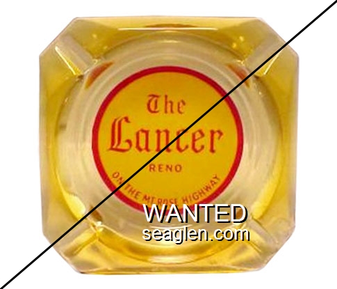 LNC-E1 Lancer 3 1/2" Amber Glass Ashtray "The Lancer Reno, On the Mt. Rose Highway" - Red on yellow |
