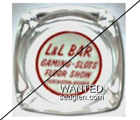 LNL-A1 L&L Bar 3 1/4" Clear Glass Ashtray "L&L Bar, Gaming - Slots, Floor Show, Yerington, Nevada" - Red on white |