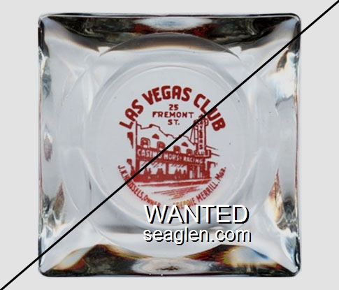 LVC-E1 Las Vegas Club 3 1/2" Clear Glass Ashtray "Las Vegas Club, 25 Fremont St., J.K. Houssels, Owner - Freddie Merrill Mgr." - Red |