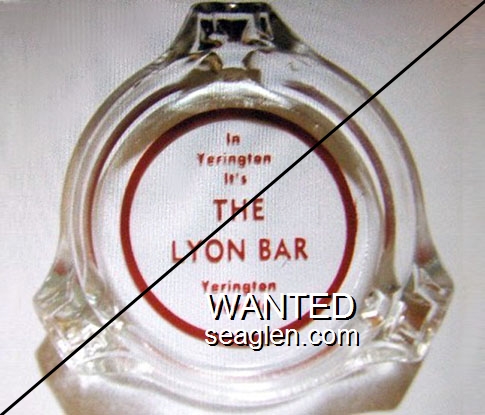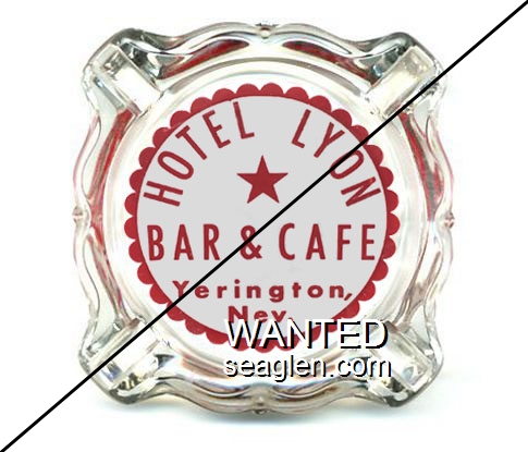 LBC-A1 Lyon Bar and Casino 3 11/16" Clear Glass Ashtray "Hotel Lyon, Bar & Cafe, Yerington, Nevada" - Red on white |