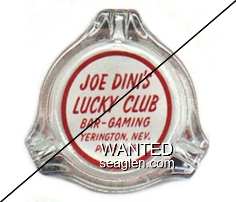 LCD-A1 Lucky Club, Joe Dini's 3 3/8" Clear Glass Ashtray "Joe Dini's Luck Club, Bar - Gaming, Yerington, Nev., Phone 68" - Red on white |