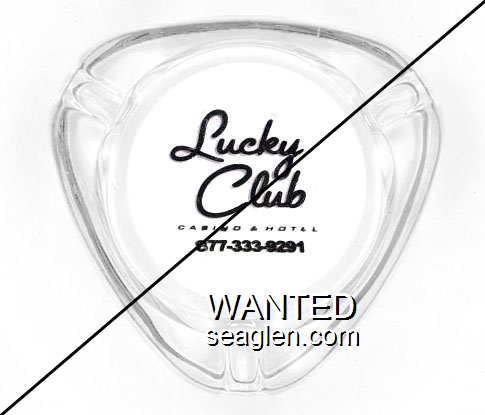 LCN-A1 Lucky Club Casino & Hotel 3 1/2" Clear Glass Ashtray "Lucky Club Casino & Hotel, 877-333-9291" - Black |