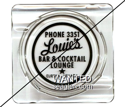 LOU-A1 Louie's 4 1/4" Clear Glass Ashtray "Phone 3351, Louie's Bar & Cocktail Lounge, Eureka, Nevada" - Black |