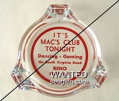 MAC-A1 Mac's Club 3 1/4" Clear Glass Ashtray "It's Mac's Club Tonight, Dancing - Gaming, On South Virginia Road, Reno, Nevada" - Red |