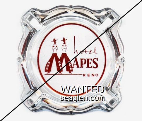 MAP-G1 Mapes Hotel and Money Tree Casino 3 11/16" Clear Glass Ashtray "hotel Mapes, Reno" - Red on white |