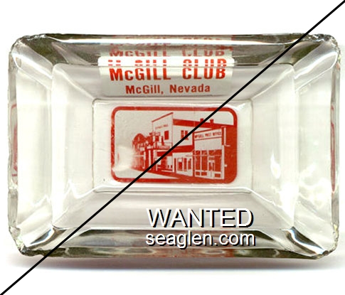 MCG-C1 McGill Club 4 x 6" Clear Glass Ashtray "McGill Club, McGill, Nevada" - Red on white |